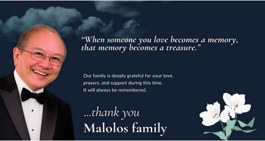 The Malolos extend their profound gratitude for the overwhelming love shown after Philip’s passing. Your presence, prayers, and generosity provided immense comfort. They are very grateful and touched for all the support from many, such as the St. Martin de Porres group, the BLD community, and many others who offered tributes. Though we cannot thank everyone individually, your support remains a cherished lifeline.